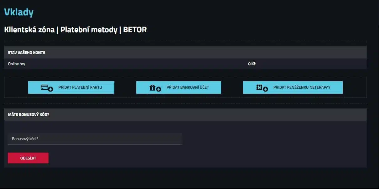 Vklady do online casin, sázkových kanceláří a dalších online služeb v ČR.